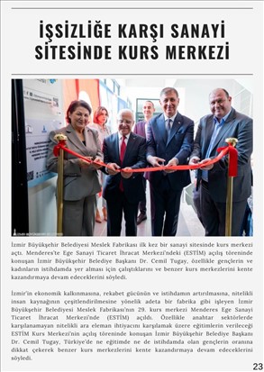 İzmir Büyükşehir Belediye Başkanı Dr. Cemil Tugay'ın "yaşamın her alanına dokunan sosyal belediyecilik" ve "hizmetlere kolay erişim" hedefleri kapsamında başlatılan iletişim çalışması sürüyor. Kadın ve Aile Hizmetleri Dairesi Başkanlığı’nın yayımladığı "Hep Birlikte İzmir" e-bülteni, kasım ayındaki ikinci sayısı ile okuyucularla buluştu. Bülten; Meslek Fabrikası, Çocuk Çalışmaları, Gençlik Çalışmaları ve Kadın Çalışmaları şube müdürlüklerinin faaliyetlerini tek çatıda topluyor.