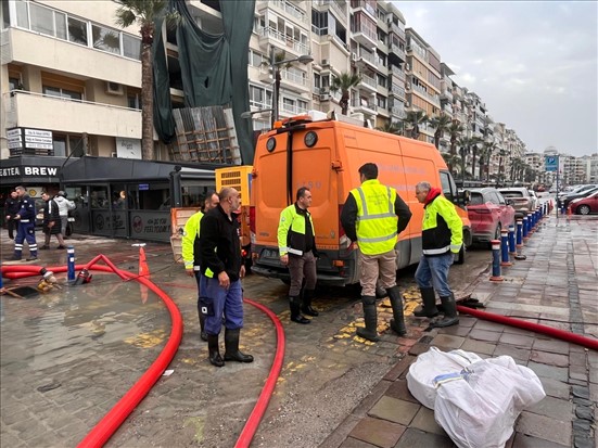Ancak tablo yalnızca rüzgarla sınırlı kalmadı. Bostanlı ve Pasaport istasyonlarından alınan verilere göre alçak basınç sistemi nedeniyle İzmir Körfezi’nde deniz seviyesi son 24 saatte yaklaşık 60 santimetre yükseldi. Kuvvetli lodosun oluşturduğu 90 santimetre ile 1 metre arasındaki dalgalarla birlikte kıyı hattında hissedilen toplam su etkisi yer yer 1,5 metreye ulaştı. Bu durum özellikle düşük kotlu bölgelerde deniz baskını, dalga aşması ve yağmursuyu sistemlerinde geri basma riskini artırdı. İzmir Büyükşehir Belediyesi ve İZSU ekipleri kıyı hattında ve riskli bölgelerde su tahliyesi ve kontrol çalışmalarını aralıksız sürdürüyor.